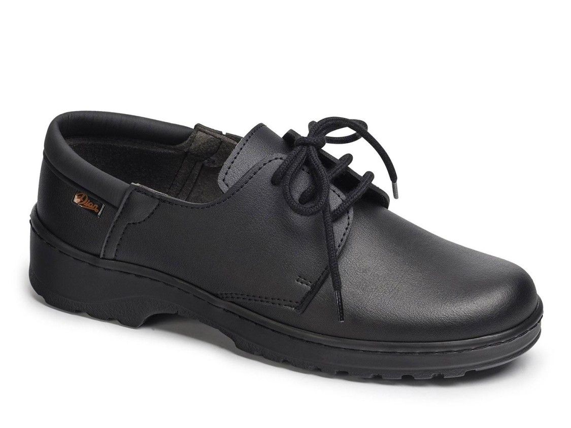 Chaussure à lacets très antidérapante, aussi bien par temps sec que humide. Semelle crantée pour faciliter l'évacuation des liquides et éviter les glissades sur sol mouillé. Tige en microfibre respirante D'COVER OEKOTEX®, lavable à 40 °C. Talon rembourré pour éviter les glissements pendant la marche ou en flexion extrême, protégeant ainsi le pied des frottements. Semelle intérieure rembourrée en mousse de polyuréthane avec traitement antibactérien, coutures de sécurité intégrées à la tige pour une adhérence optimale même en cas de lavage à chaud. Unisexe Chaussures idéales pour les entreprises et l'hôtellerie.