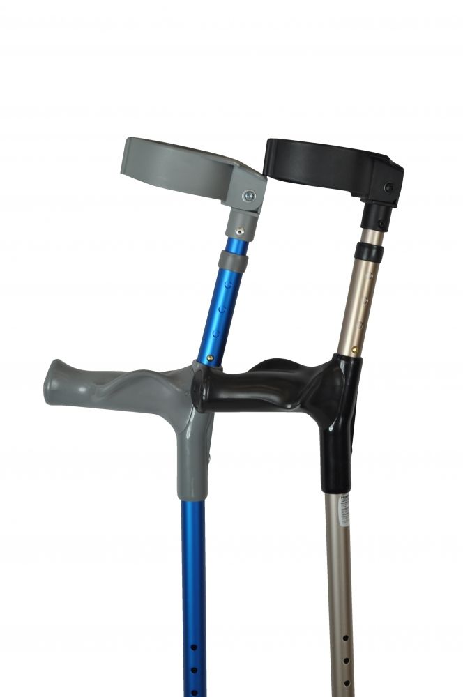 Béquilles réglables avec brassard anatomique et coudière rabattable. Bleu métallisé