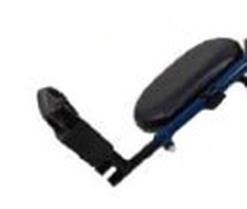 Le dossier anti-transpirant et les accoudoirs sont pliables pour améliorer la position de l'utilisateur et faciliter le mouvement de la chaise à une autre surface.