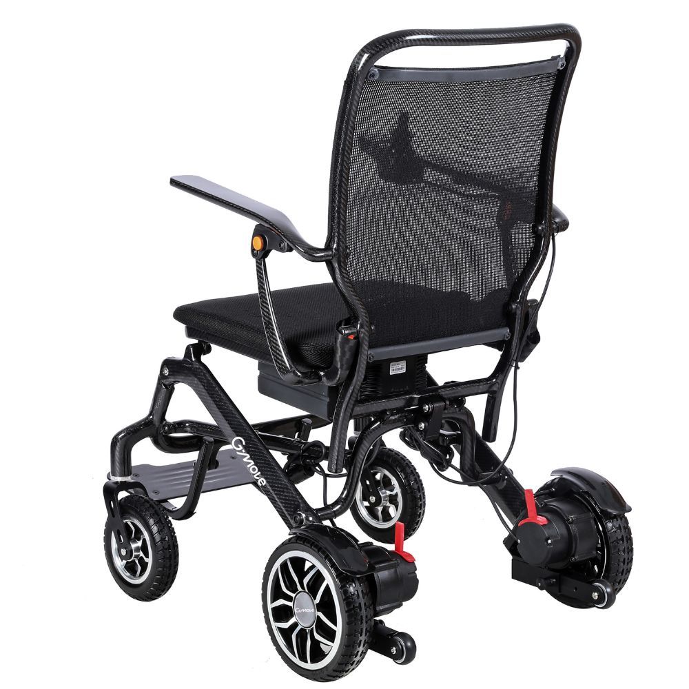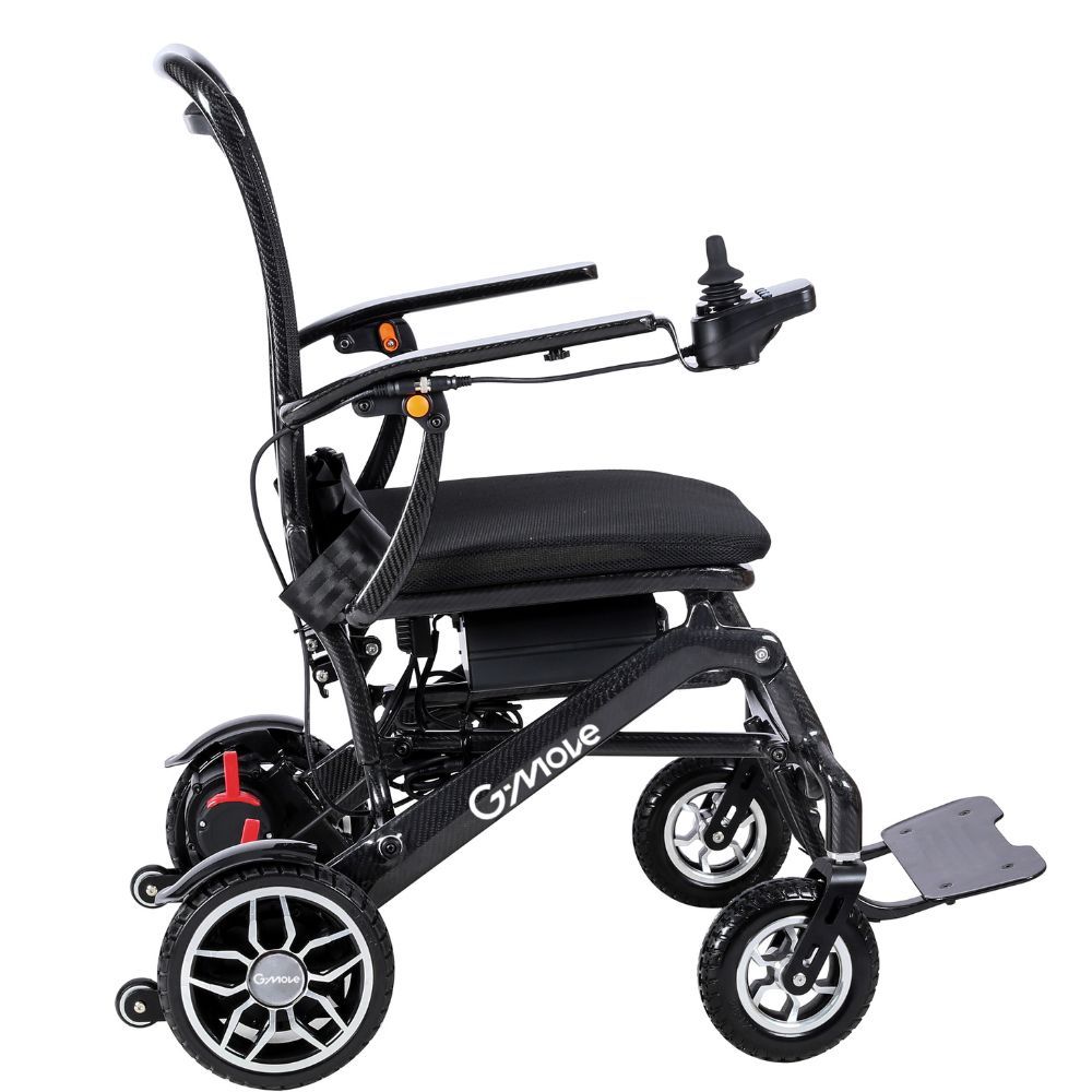 SÉCURITÉ ET CONFORT : ce fauteuil roulant est équipé d’une ceinture de sécurité, de roues anti-basculement, d’un tissu 3D respirant, d’accoudoirs relevables et de repose-pieds indépendants. MANETTE DE VITESSE NUMÉRIQUE : Le fauteuil roulant électrique G-Move C2 est équipé d'une manette de vitesse avec affichage numérique à 5 vitesses, adaptable aux utilisateurs droitiers et gauchers, d'un indicateur de batterie et d'une alerte sonore. Dimensions : Hauteur totale : 95 cm Largeur totale : 60 cm Profondeur avec repose-pieds : 93 cm Hauteur d'assise : 46 cm (+6 cm pour le coussin) Dimensions de l'assise : 43 x 44 cm Dimensions du dossier : 53 x 44 cm Dimensions plié : 60 x 37 x 70 cm Diamètre de la roue avant : 180 mm Diamètre de la roue arrière : 220 mm Poids maximal de l'utilisateur : 100 kg Poids net (sans batterie) : 15,90 kg Poids net : 19,40 kg Poids brut : 24,80 kg Emballage : 67 x 39 x 80 cm