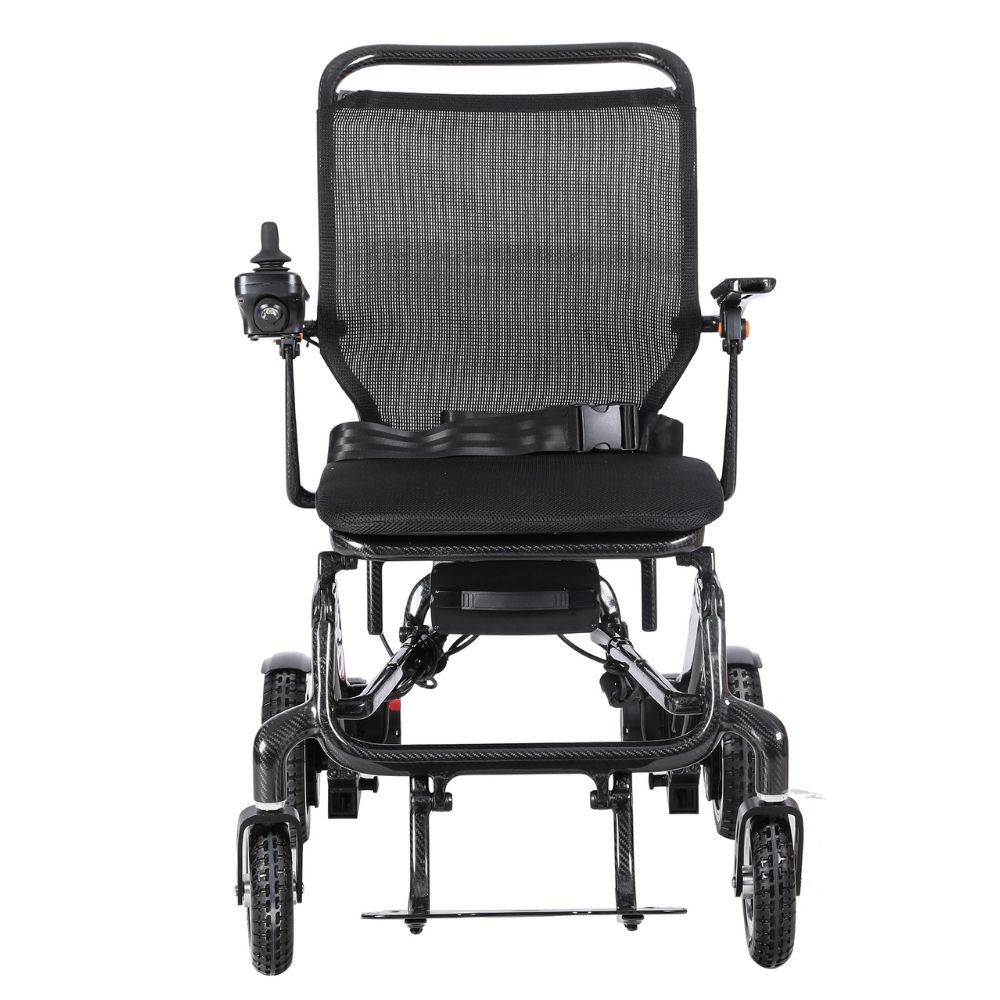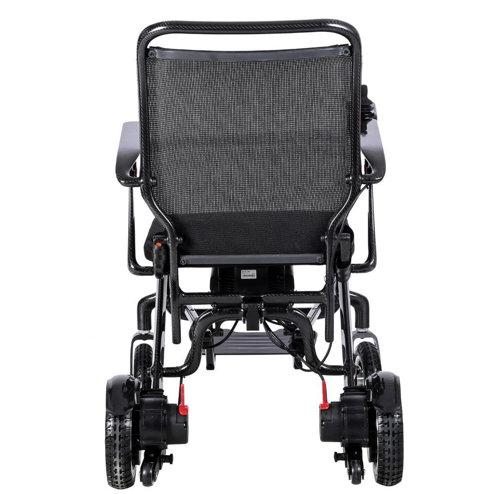 ROBUSTESSE MAXIMALE : supporte un poids maximal de 100 kg. Ses roues avant de 180 mm et arrière de 220 mm, ses pneus pleins et son cadre en fibre de carbone en font un fauteuil robuste et durable.
