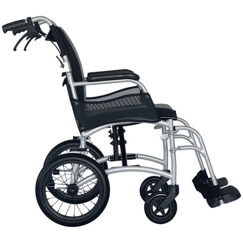 L'un des points forts du fauteuil roulant Ergo Transit est sa conception, non seulement pour l'utilisateur, mais aussi pour le confort du soignant. Grâce à sa structure légère et ergonomique, le charger dans la voiture ou le déplacer en ville est simple et confortable. Les freins passager sont un atout supplémentaire qui améliore considérablement l'expérience utilisateur, offrant une sécurité et un contrôle accrus au quotidien.