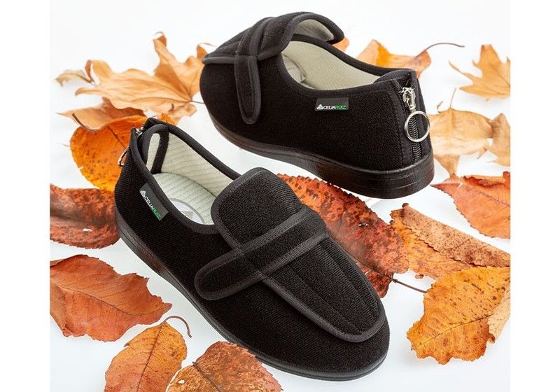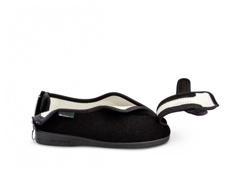 Le modèle Helios est conçu pour s'ouvrir complètement par le haut. Il est également doté d'une fermeture éclair au talon pour un enfilage facile.