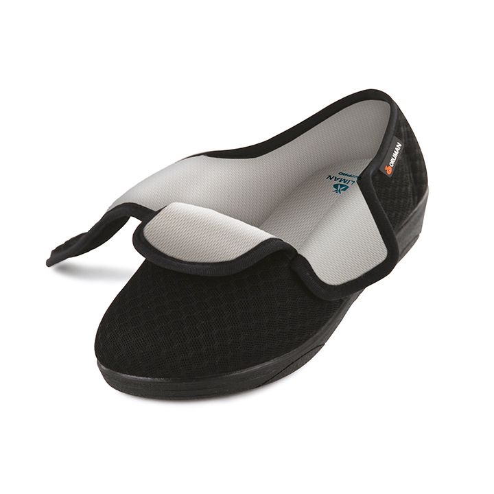 Chaussure confortable dotée d'un système de fermeture ajustable à large ouverture pour un maintien parfait. Avant-pied sans coutures, idéal pour les pieds ayant subi une intervention chirurgicale. Semelle intérieure amovible compatible avec le port de semelles orthopédiques. Tissu alvéolé pour une respirabilité optimale et un excellent soutien du pied. Déperlant. Tissu extérieur légèrement élastique pour une meilleure adaptation aux déformations des orteils.