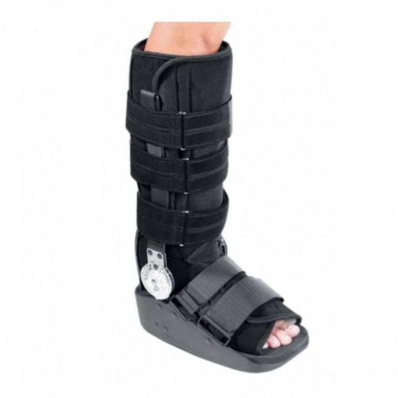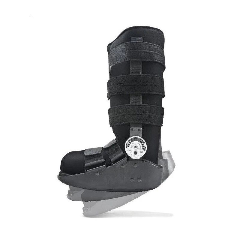 Walker articulé, réparations du tendon d'Achille, entorses, déchirures ligamentaires et fractures stables du tiers médian et distal du tibia et du péroné. c'est aussi un substitut sûr au plâtre lorsqu'un traitement fonctionnel est requis. Il permet une immobilisation totale de la cheville après la chirurgie et le système ROM permettra d'augmenter l'angle de flexion-extension de la cheville pour la phase de rééducation.