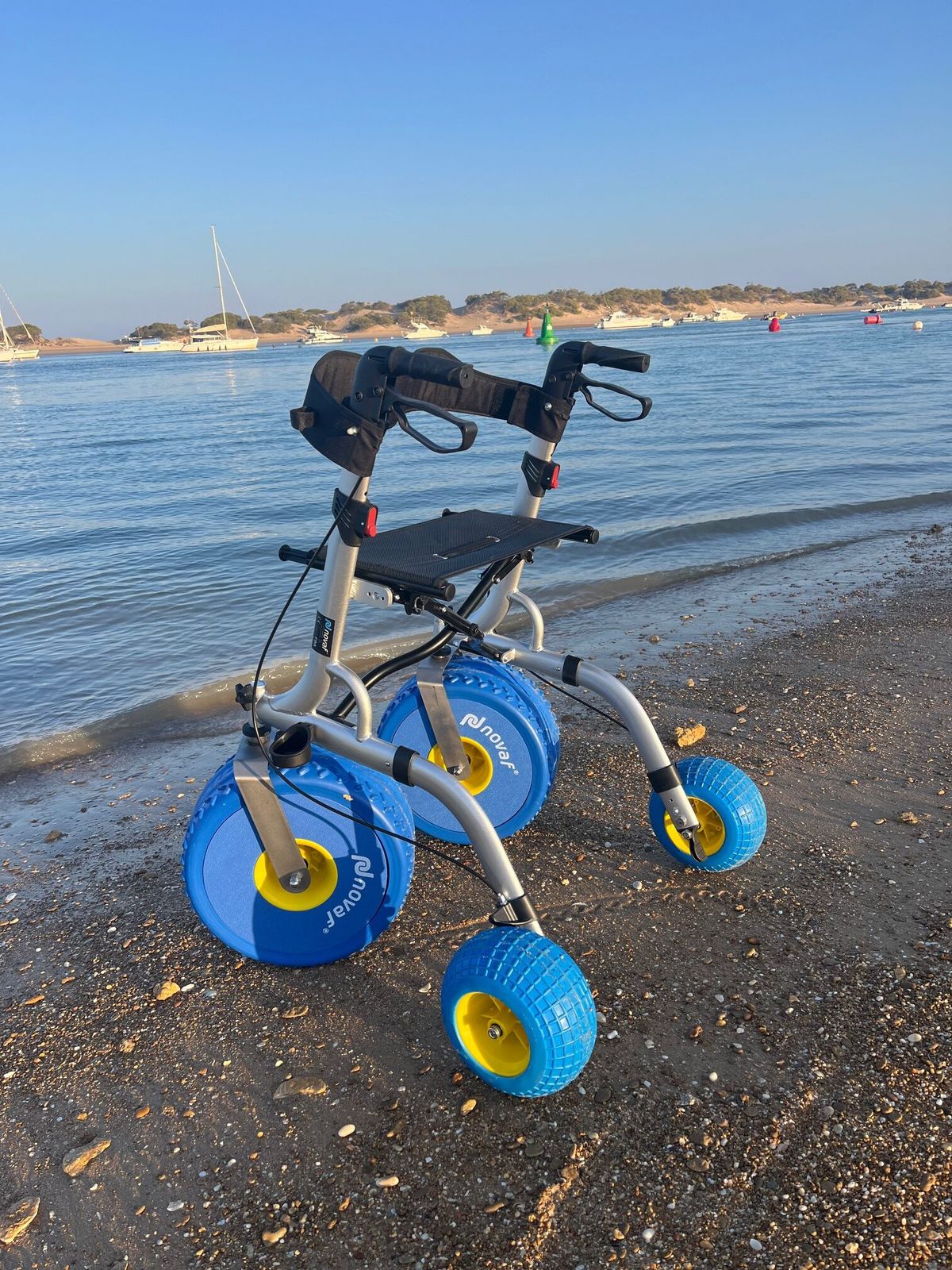 Le déambulateur « CITY BEACH » avec siège et roulettes est un déambulateur avec siège conçu pour la plage, la campagne et les terrains accidentés, pavés ou sablonneux. Fabriqué en aluminium anticorrosion, le déambulateur « CITY BEACH » avec siège et roulettes est confortable, sûr et très maniable pour la plage, le lac ou tout autre terrain accidenté. Le déambulateur « CITY BEACH » avec siège et roulettes vous offrira une expérience et un plaisir incomparables à la campagne, à la plage ou au lac, avec tout le confort dont vous n'aviez jamais rêvé. Le déambulateur « CITY BEACH » avec siège et roulettes est disponible en deux tailles de roues. Les roues avant sont pneumatiques et de grand diamètre pour éviter l'enfoncement et assurer une meilleure stabilité sur le sable. Leur bande de roulement crantée offre une meilleure adhérence sur les surfaces comme le sable. Les roues arrière sont les mêmes que celles que nous montons sur notre déambulateur « CITY BEACH » avec siège et roues, qui sont plus petites mais ont également une bande de roulement pour une bonne adhérence sur tous les types de surfaces.