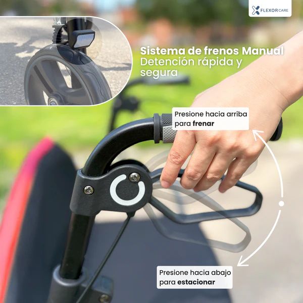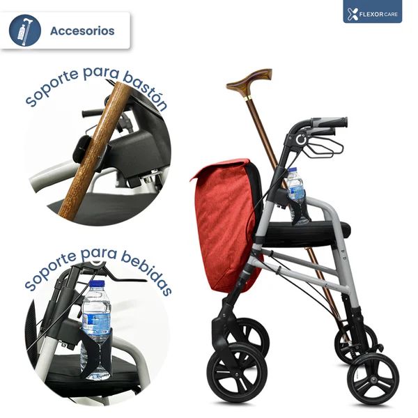 Le déambulateur Flexor FI est pliable et compact. Idéal pour le ranger à la maison sans prendre de place ou pour l'emporter en voyage. Son guidon réglable en hauteur le rend idéal pour tous. Il est doté d'une assise et d'un dossier pour un repos confortable pendant les promenades. Ses freins à levier sont faciles d'accès, sûrs et très faciles à utiliser. Les grandes roues permettent un déplacement fluide et sûr. Il est très résistant et supporte un poids allant jusqu'à 136 kg. Un porte-canne et un porte-bouteille sont offerts !