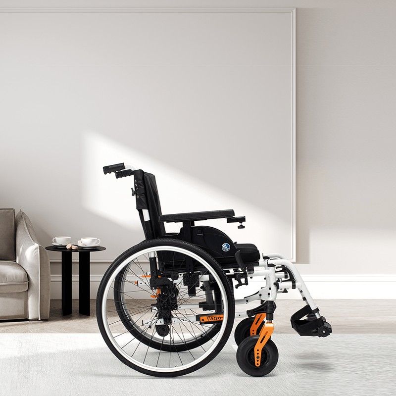 Le fauteuil roulant électrique Verso se transforme en fauteuil roulant manuel autopropulsé grâce au kit de roues de 24 pouces, qui se fixe facilement pour remplacer la partie arrière. Besoin des performances d'un fauteuil roulant électrique ? Le fauteuil Verso vous le garantit. Besoin de la polyvalence et de la légèreté d'un fauteuil roulant autopropulsé ? Le fauteuil Verso vous le garantit. Transformez facilement le fauteuil Verso en fauteuil manuel grâce au kit de roues de 24 pouces.