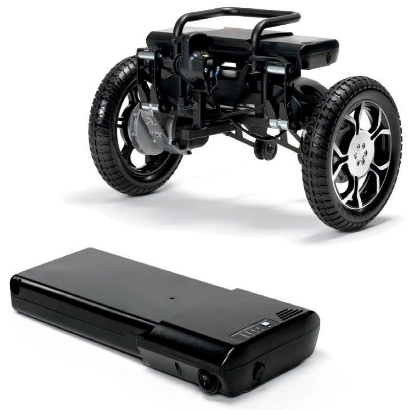 Si votre journée est chargée et que vous manquez de temps pour le recharger, vous pouvez ajouter une batterie supplémentaire pour plus de confort. La batterie est située à l'arrière du fauteuil roulant, ce qui vous permet d'y accéder facilement et de vérifier son état lorsque vous la retirez pour la recharger.