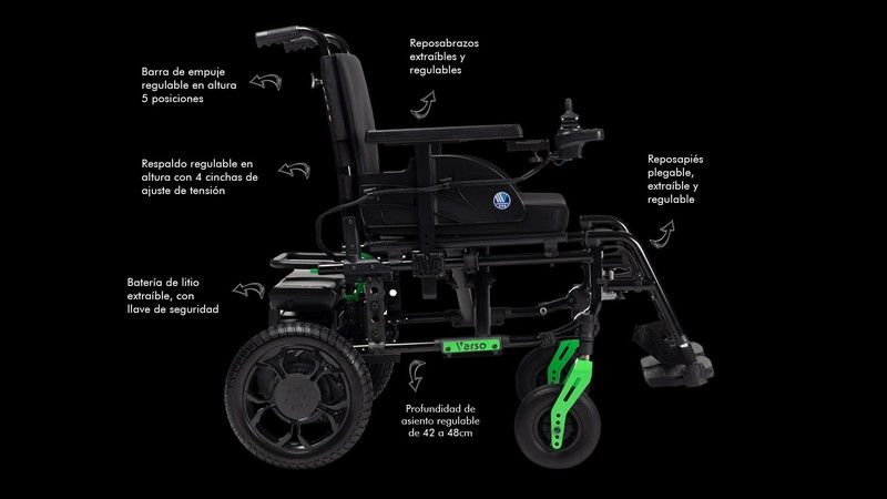 Le nouveau Verso est un fauteuil roulant électrique léger, confortable, agile et polyvalent, équipé d'une batterie au lithium, conçu pour les utilisateurs qui souhaitent une mobilité sans entrave.