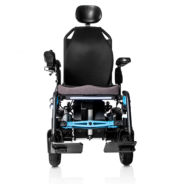 L'Atlantik Flex se distingue par sa taille compacte, idéale pour une utilisation intérieure et extérieure. Inclinaison et basculement. Son atout majeur réside dans son système de suspension à entretoises croisées, qui permet une flexibilité et un basculement, s'adaptant ainsi à tous les types de terrains. Ce système lisse les irrégularités du sol et facilite le franchissement des trottoirs jusqu'à 10 cm de hauteur. Le fauteuil offre un basculement manuel et électrique. Équipé de deux puissants moteurs de 450 W, il atteint une vitesse maximale de 10 km/h. Ses deux batteries gel de 55 Ah lui confèrent une autonomie jusqu'à 40 km. De plus, il intègre un système d'éclairage LED et de clignotants performant, entièrement contrôlable par joystick.