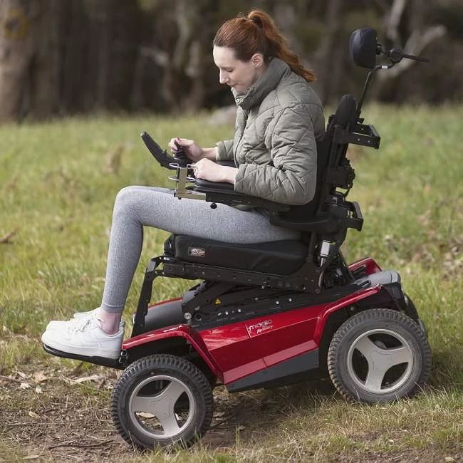 Le tout est contrôlé par un joystick intuitif, idéal aussi bien pour les utilisateurs très habiles que pour ceux ayant une mobilité réduite des mains. Autonomie prolongée pour des trajets plus longs : Le Magic XT2 est équipé de série de batteries haute capacité, offrant une autonomie supérieure aux modèles classiques. Cet avantage est essentiel pour les utilisateurs effectuant de longs trajets domicile-travail, des promenades quotidiennes, des randonnées en pleine nature ou des excursions à la campagne. Grâce à cette autonomie accrue, vous profitez d'une plus grande liberté sans vous soucier de la batterie, et vous rentrez chez vous l'esprit tranquille. Conception robuste, légère et facile d'entretien : Le cadre du Magic XT2 est fabriqué à partir de matériaux de haute qualité qui garantissent durabilité, résistance à l'usure et facilité d'entretien. Ses panneaux extérieurs sont moulés par injection, ce qui lui confère une esthétique moderne et aérodynamique, tout en permettant un démontage facile pour le nettoyage ou le remplacement des pièces. Le châssis a été conçu pour résister à de longues journées d'utilisation intensive en extérieur, tout en conservant un confort optimal grâce à son design ergonomique et à une répartition équilibrée du poids. Design moderne et options de personnalisation : Le Magic XT2 se distingue également par son esthétique. Il est disponible en trois couleurs uniques et saisissantes : Rouge Crépuscule, Bleu Horizon et Noir Minuit. Téléchargez le bon de commande et complétez-le avec les accessoires avant de commander. Pour toute question, veuillez nous appeler au +34 934 398 578. Entièrement configurable, ce fauteuil roulant offre un large choix d’options : sièges et dossiers (MPS Confort ou Rééducation), avec de multiples configurations possibles : dossiers inclinables, appuie-tête réglables, supports de joystick rabattables, coussins anatomiques, etc. Tout est conçu pour s’adapter aux besoins spécifiques de chaque utilisateur et garantir une utilisation prolongée sans fatigue. Éclairage LED intégré pour une sécurité accrue : Le Magic XT2 se distingue par son système d’éclairage LED complet, à l’avant comme à l’arrière, doté de six ampoules puissantes offrant une excellente visibilité par faible luminosité. Il comprend également des clignotants latéraux pour une sécurité optimale lors des trajets nocturnes ou dans la circulation. Des accessoires qui font la différence : Le Magic XT2 peut être équipé d’une large gamme d’accessoires optionnels qui améliorent encore sa fonctionnalité et son confort au quotidien ou lors de longs trajets : - Porte-gobelets ou porte-bouteilles - Sacs de rangement et sacs à dos - Support pour téléphone portable - Chargeur supplémentaire - Compartiment de rangement arrière - Appui-tête supplémentaire - Fonctions électriques du siège (réglage du dossier, inclinaison, basculement). Chaque accessoire a été conçu pour s'intégrer parfaitement à la structure sans en altérer les performances, tout en permettant une personnalisation complète de l'expérience utilisateur.