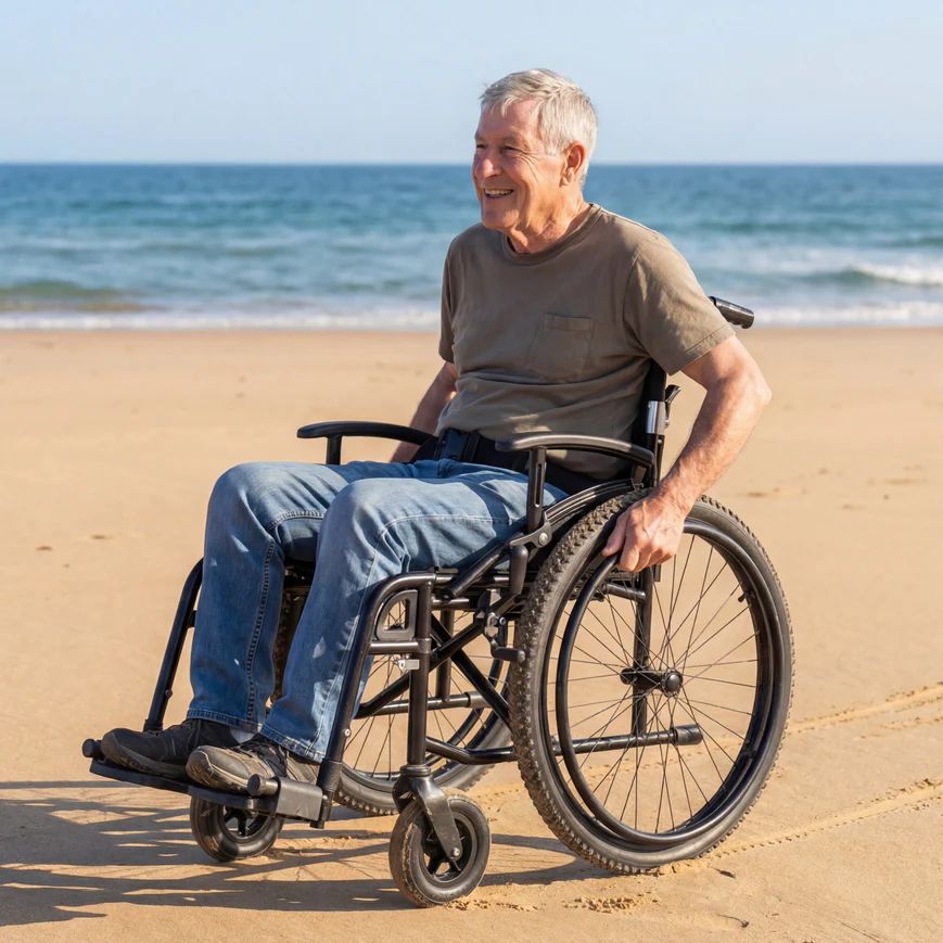Fauteuil roulant tout-terrain pliable (hauteur d'assise 46 cm), KMINA K10077