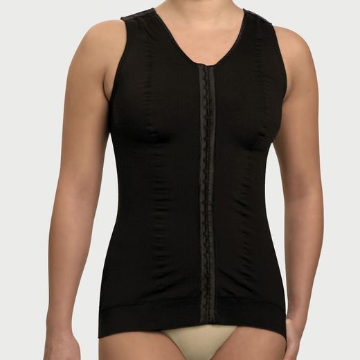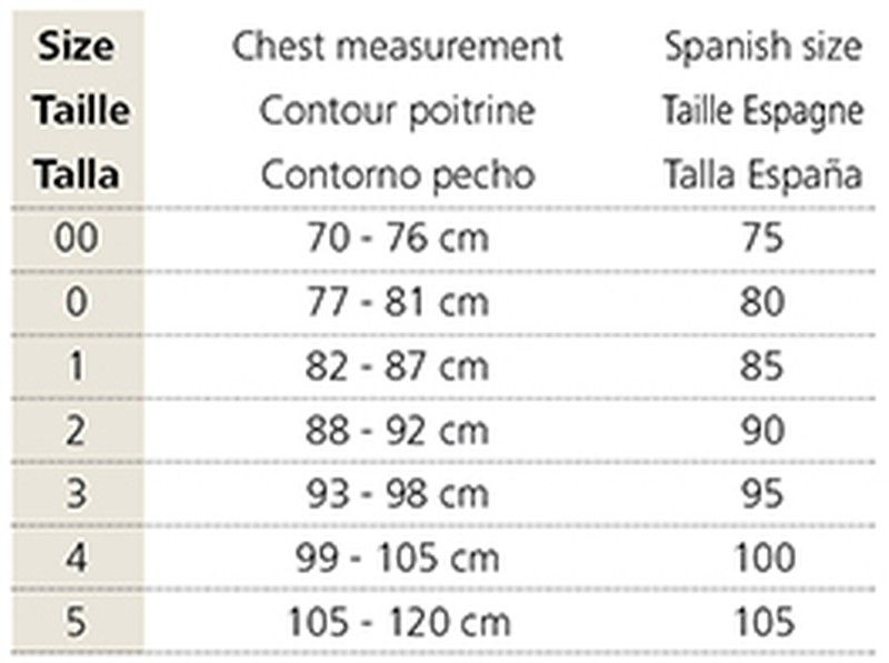 Vêtement en série conçu en tissu circulaire Disponible en 7 tailles. Tissu doux et respirant Matériaux testés et garantis Conception anatomique et sans couture dans la partie du buste Ouverture frontale avec double bande de supports réglables Bretelles larges au niveau des épaules avec doubles bretelles réglables à agrafes Finition du vêtement avec bande silicone