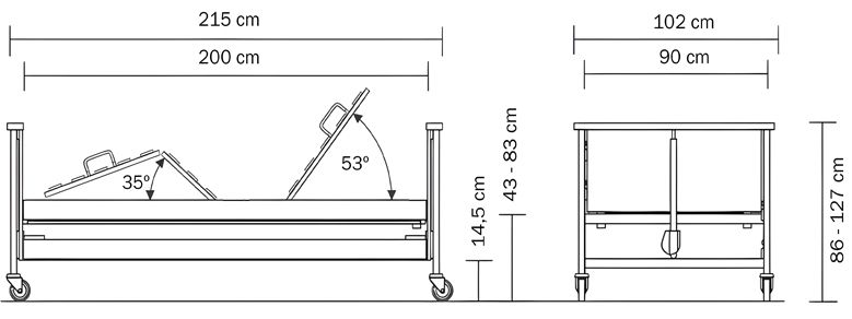 Le lit ARIES se distingue par son élégant design en bois et son sommier à lattes de 200 x 90 cm, divisé en 4 niveaux pour un confort optimal. Il est doté de barrières en aluminium pour éviter les chutes et d'une hauteur réglable de 43 cm à 83 cm. Le dossier, les pieds et la hauteur sont réglables électroniquement par moteurs, offrant ainsi polyvalence et confort.