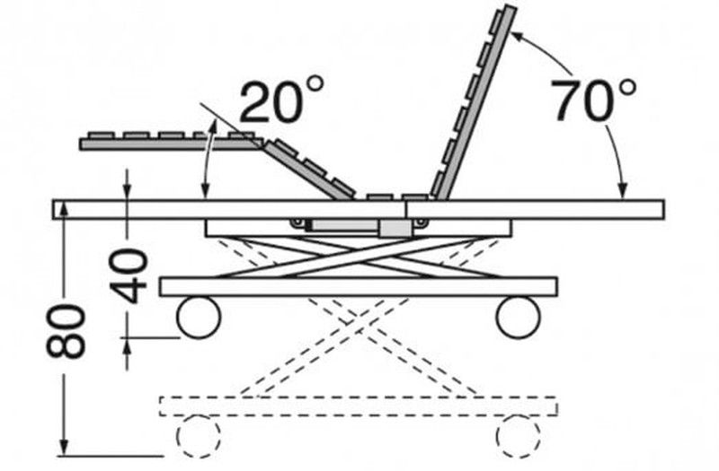 Lit à usage intensif classic 2. Lit électronique avec chariot élévateur, réglage électronique de la hauteur. • Réglage électronique du dossier et des jambes, avec une commande. • Confort maximal : lattes de bois. • Ergonomique : 4 plans articulés. • Quatre roues de 125 mm avec freins. • Facile à transporter et à conserver. • Montage facile, sans outils. Le sommier est démontable en deux moitiés pour faciliter le transport pouvant être effectué par une seule personne.