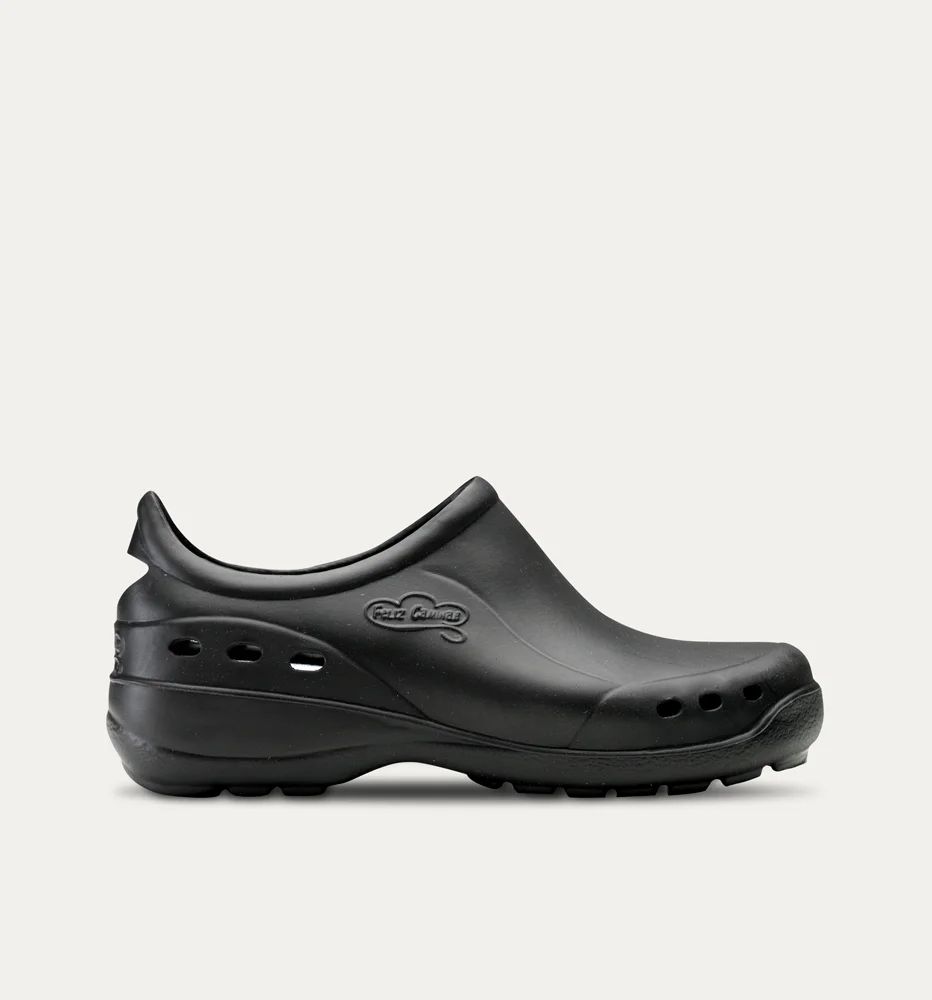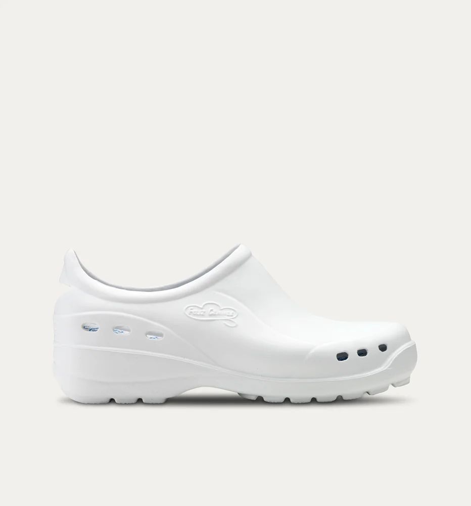 Forme anatomique pour un maintien confortable du pied pendant la marche. Chaussure professionnelle légère en EVA sans latex, conçue pour un confort optimal tout au long de la journée. Son embout intérieur anatomique Coolmax absorbe la transpiration, est antibactérien, lavable et réutilisable. Semelle extérieure antidérapante pour une adhérence silencieuse et sûre sur toutes les surfaces.