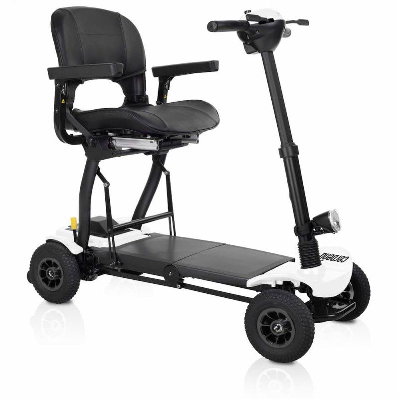 Nous vous présentons le nouveau scooter pliable d'une grande légèreté avec batterie au lithium de 10Ah (20km d'autonomie) ou 20Ah (30km d'autonomie) Il est petit, maniable, idéal pour les personnes à mobilité réduite qui souhaitent se déplacer dans toutes sortes d'espaces. 3 couleurs au choix : blanc, rouge et bleu. Ce scooter moderne est le dernier né des scooters pliants légers, idéal pour les personnes actives qui voyagent souvent ou qui ont besoin de transporter régulièrement leur scooter dans le coffre de n'importe quel véhicule. Il est idéal pour la ville et pour les voyages. C'est l'un des scooters les plus légers du marché et résistant à la fois, car il ne pèse que 28'25 kg (avec batteries) et est indiqué pour supporter jusqu'à 125 kg de poids. Veuillez noter que le siège de ce scooter mesure 43 cm de large et 40 cm de profondeur. Pour plus de facilité lors de l'accès à votre trottinette, les accoudoirs sont entièrement rabattables. Lorsque la trottinette électrique et pliante SARDEÑA est entièrement pliée, elle a des dimensions de 70 cm de haut et 53 cm de large, vous pouvez donc transporter votre trottinette pliante légère dans le coffre de n'importe quel véhicule.