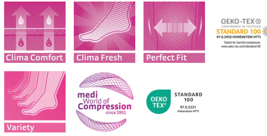 Grâce à sa faible stabilité des parois et à son élasticité latérale, ce bas de compression est adapté aux vêtements à mailles plates.