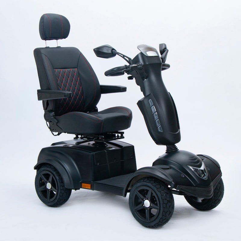 Les quatre roues pneumatiques sont équipées d'un système d'amortissement des chocs, une caractéristique essentielle qui, associée au siège rembourré, contribue à offrir un confort optimal à l'utilisateur.