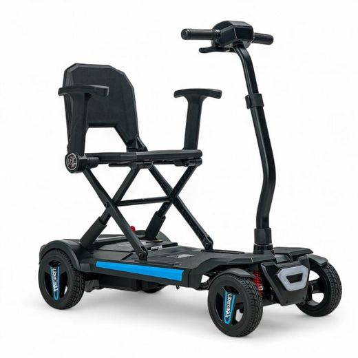 Les accoudoirs sont pliables (et amovibles) et réglables en hauteur, permettant à chaque utilisateur de les adapter à sa morphologie. Le guidon est également réglable en hauteur.