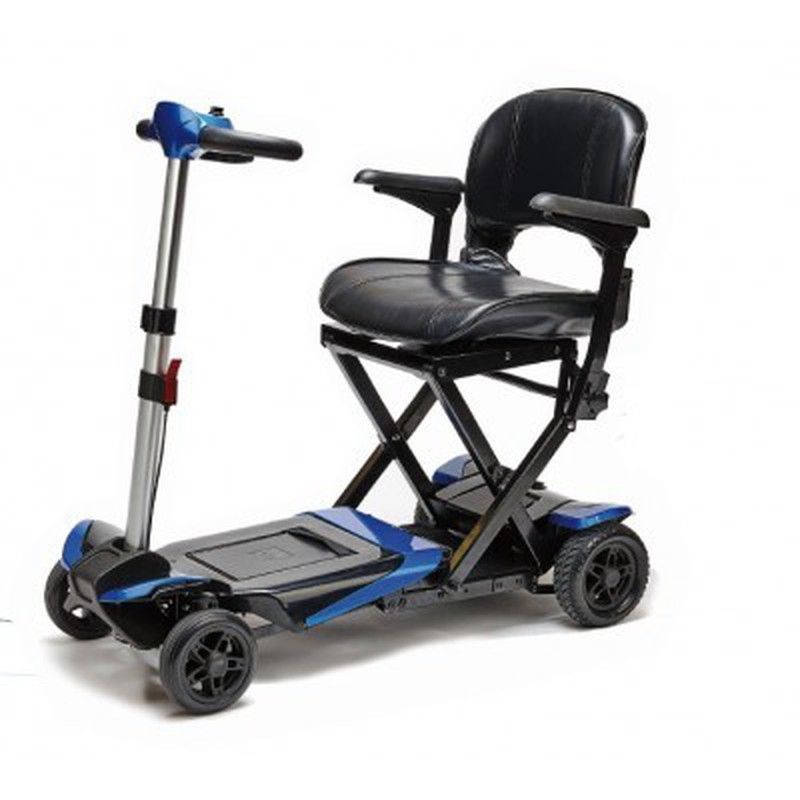 L'Wellell Transformer est le seul scooter sur le marché qui se plie électriquement à l'aide d'une télécommande. Cela facilite grandement son utilisation pour les personnes à mobilité réduite. Ses roues arrière lui permettent d'être transporté comme un chariot une fois plié.